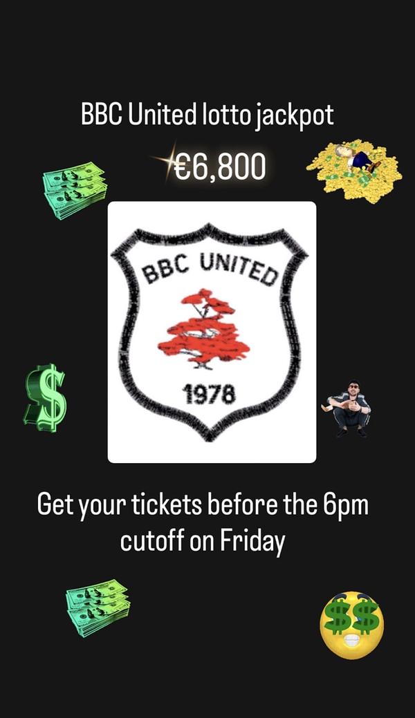ππβ¬6,800ππOur lotto jackpot continues to grow, so be sure to get your tickets before the 6pm cut off on Friday February 6th. Simply click the link in our bio or on this link https://bbcunited.com/categories/lotto/products to purchase your tickets. Thank you to our lotto sponsors @sharpgroup_ie and Cuileann Electrical Ltd for their continued support. If youβre not in, you canβt win so donβt delay and get your tickets now.